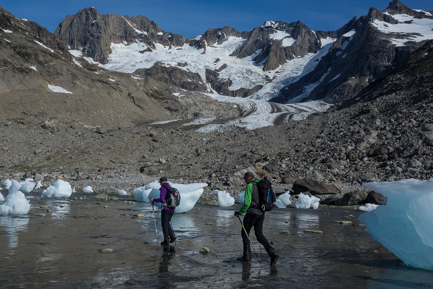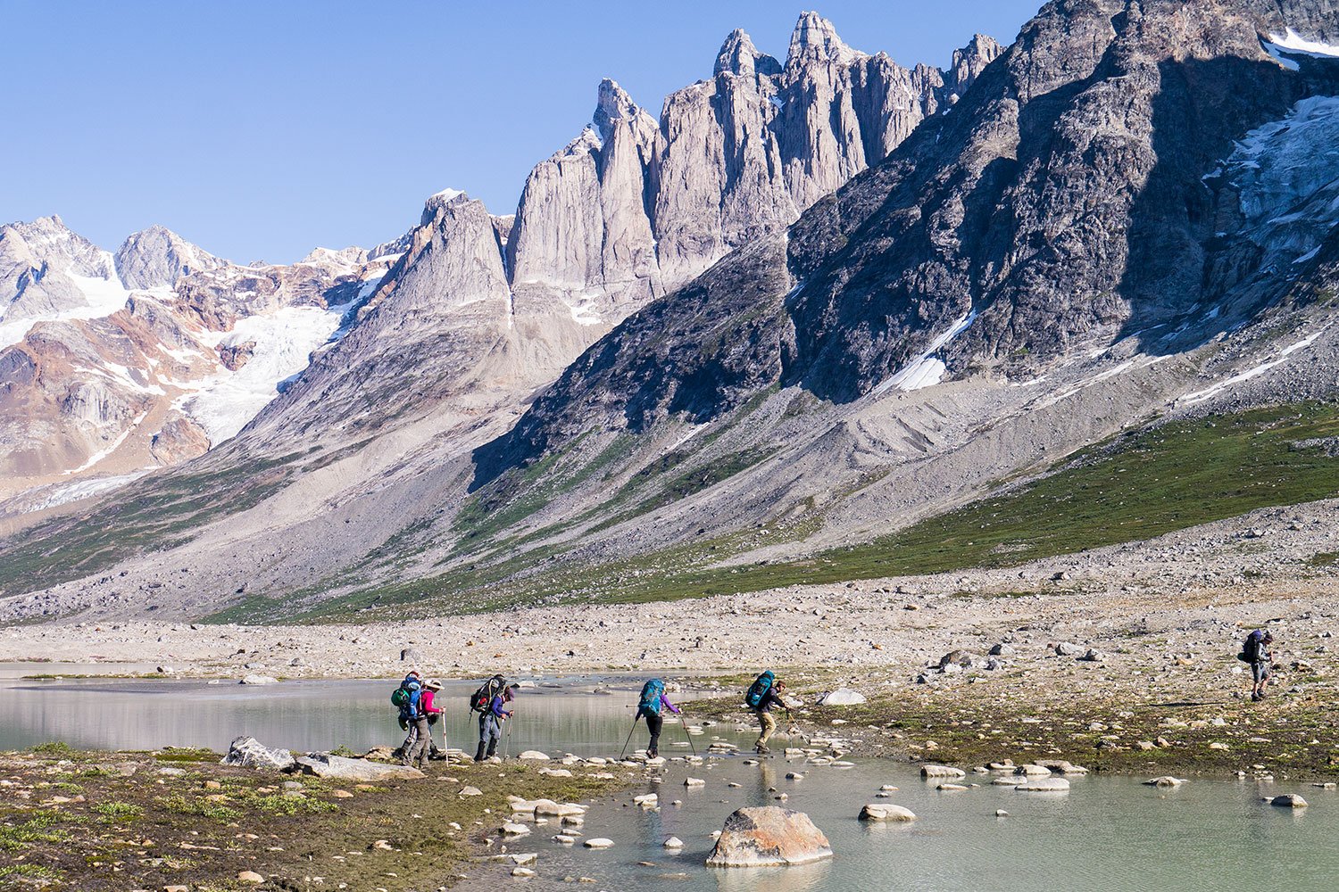 Inspired by our bond with this wild land, we provide what we hope to be a definitive series of Greenland treks, from boat-supported hiking with a daypack all the way through to multi-week self-sufficient wilderness trekking expeditions. All of our trips explore the many facets that make this place so special, from the rich marine eco-system to the vibrant summer tundra, from calving glacier faces to an ancient culture. For over 20 years now, we set out each season from our mountain lodge to immerse ourselves in this powerful place.