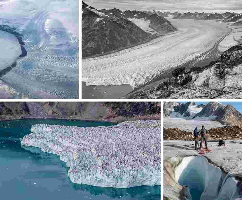 Some of the largest glaciers on earth, our coastline is inundated with ice that flows from inland through the coastal mountains to reach the ocean in calving faces that break into the fjords. We have set up a number of camps to capture process. There are also numerous moulin locations within hours of our lodge.