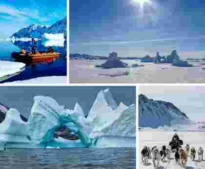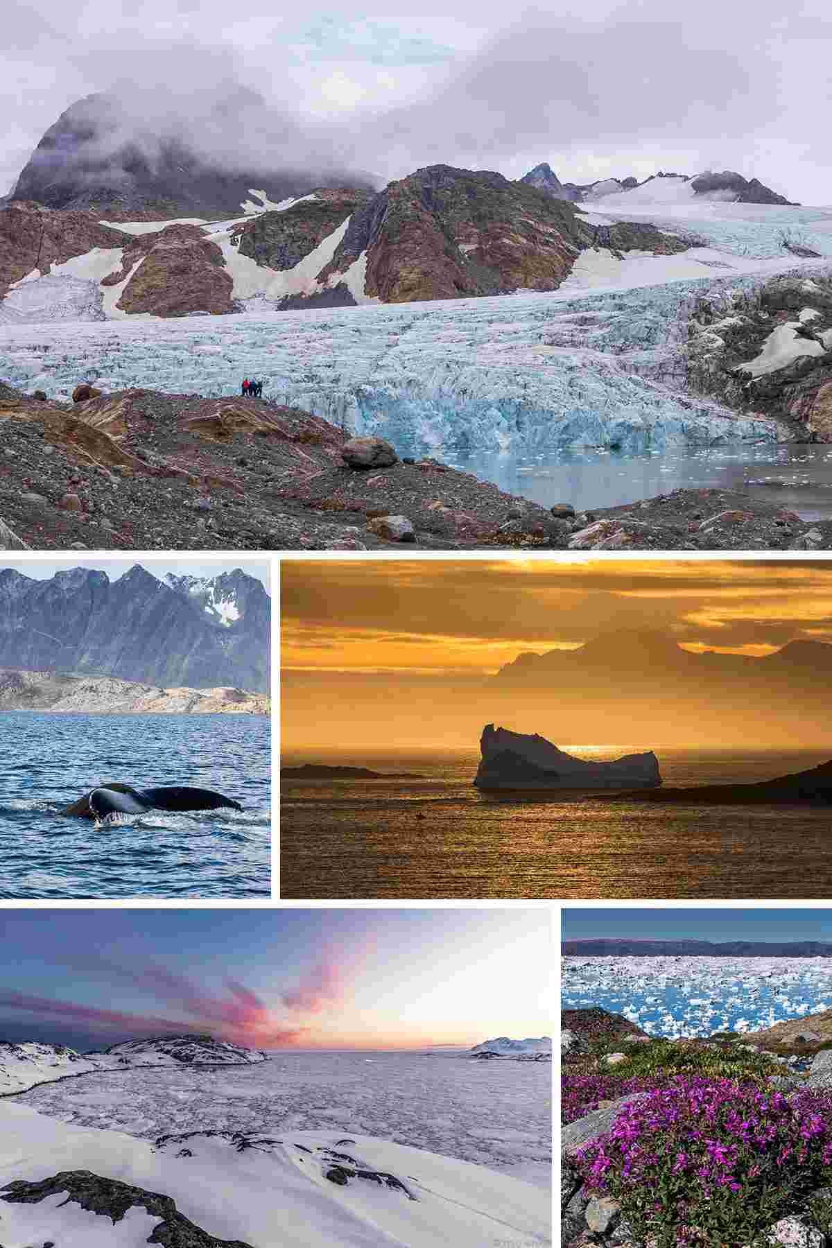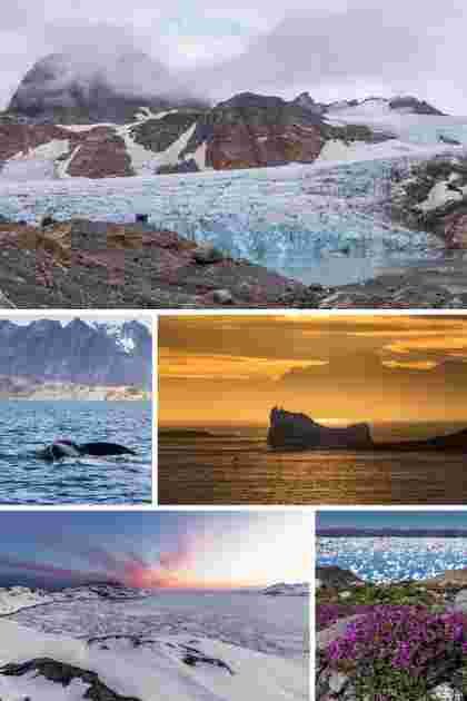 Greenland, a vast land of mountains, glaciers and fjords, provides an array of wild arctic locations and stark contrasts throughout the year, from the ice, snow and Aurora Borealis of winter to the midnight sun, vibrant tundra and open waters of summer.